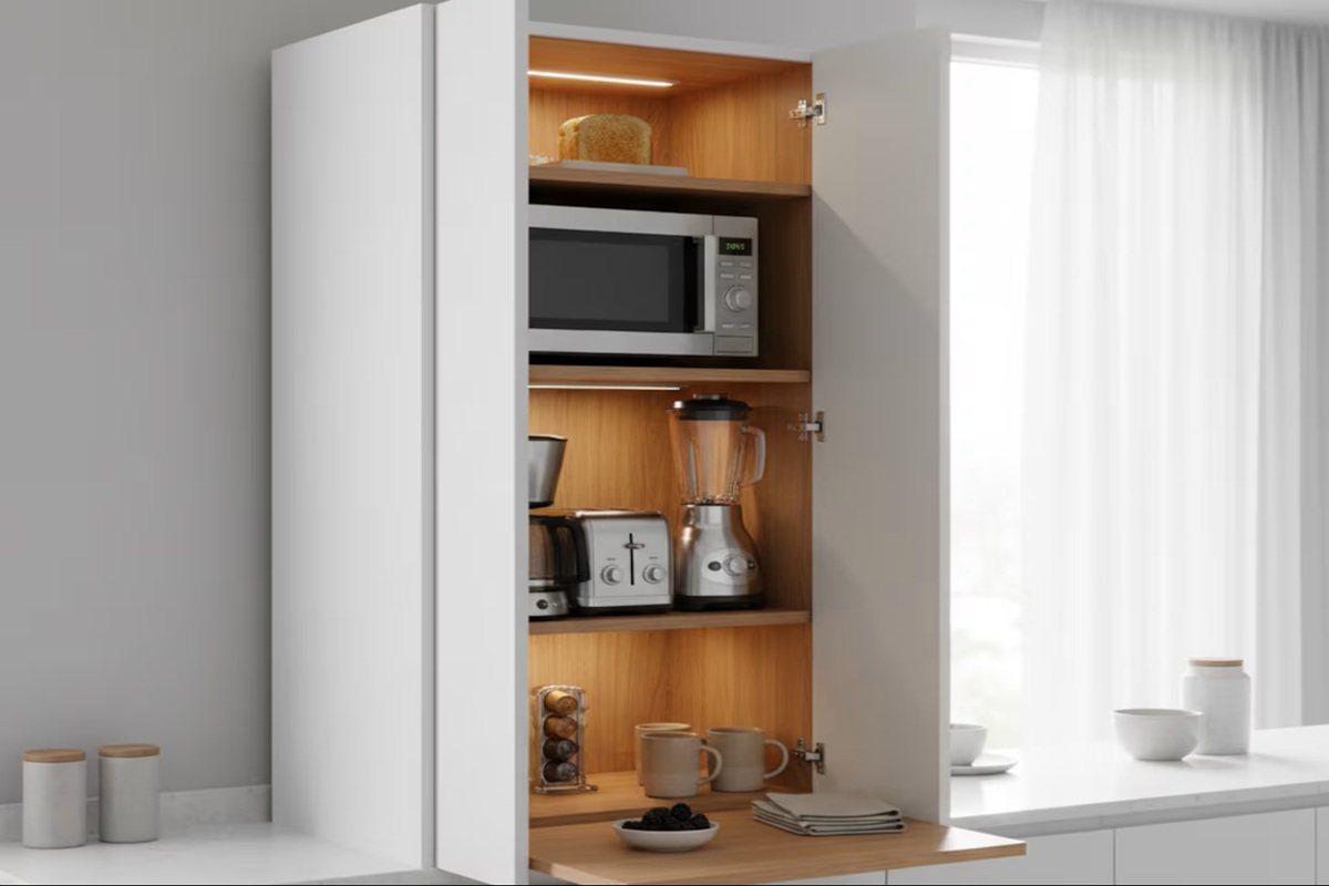 A chave para o sucesso está na otimização do espaço. Ao liberar a bancada, você ganha espaço visual e mais superfície útil para cozinhar ou colocar utensílios de cozinha. Além disso, a torre enfatiza o estilo minimalista, pois nenhum fio ou objeto fica à vista, apenas linhas simples e ordem absoluta Em casas com cozinha integrada na sala de estar ou de jantar, este móvel é um auxiliar indispensável. É semelhante a um armário ou despensa, mas esconde uma estação completa para o pequeno-almoço, ajudando a manter a harmonia visual em espaços abertos. Outra vantagem é a sua adaptabilidade, uma vez que pode ser feita por encomenda, embutida ou modular, com tomadas internas, prateleiras móveis e iluminação LED. Assim, cada família pode personalizá-la de acordo com as suas necessidades e espaço disponível.