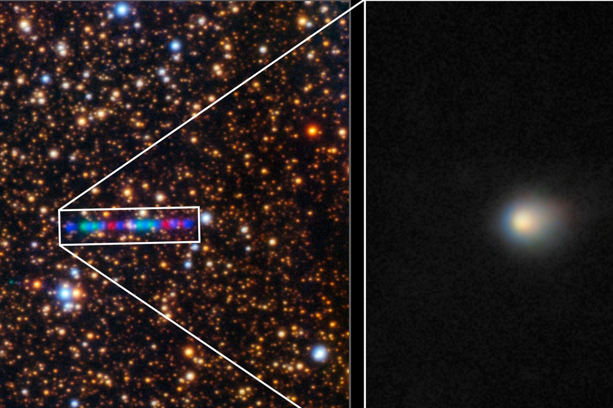 Voltando à realidade, as cometas nem sempre têm cauda. Ela aparece quando o núcleo se aquece o suficiente para sublimar substâncias voláteis, ou seja, quando o gelo e outros materiais da cometa passam do estado sólido para o gasoso ao serem aquecidos. Este fenómeno ocorre perto do Sol — onde 3I/ATLAS se encontra agora, após atingir o seu periélio — a máxima aproximação ao Sol — em 29 de outubro — e liberta gases que podem ser detetados pelos astrónomos. Tal como acontece com a maioria das cometas que se aproximam do Sol, a cauda da cometa é mais brilhante quando observada através de um filtro verde.