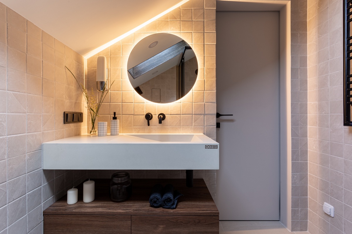 Quando combinado com iluminação indireta ou fitas LED embutidas, o efeito visual pode transformar completamente a percepção do banheiro, dando-lhe um caráter moderno, sofisticado e organizado. Esta tendência gera um resultado contemporâneo que une funcionalidade, estilo e uma estética que resiste ao passar do tempo. Os vanitorys tradicionais agora têm novos designs. O revestimento em pedra natural e estruturas com ranhuras verticais respondem principalmente à necessidade de espaços mais puros, fáceis de limpar e com materiais duráveis.
